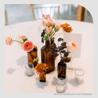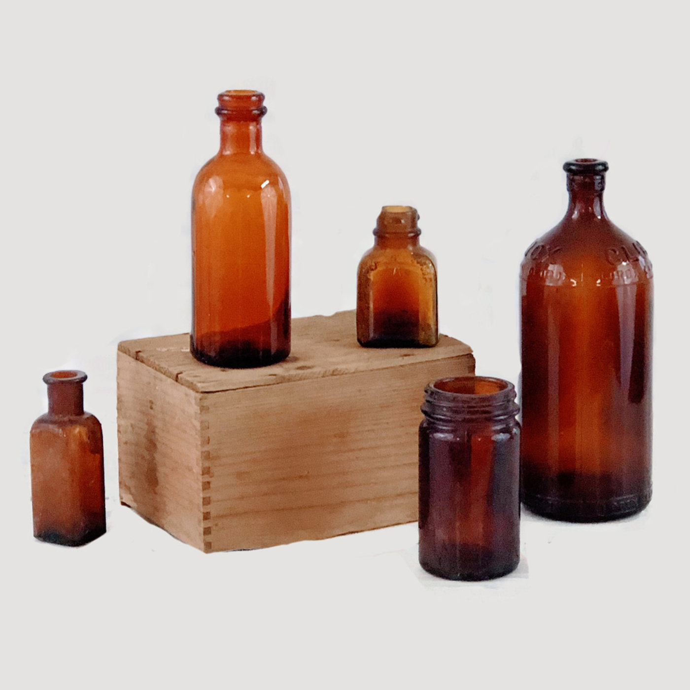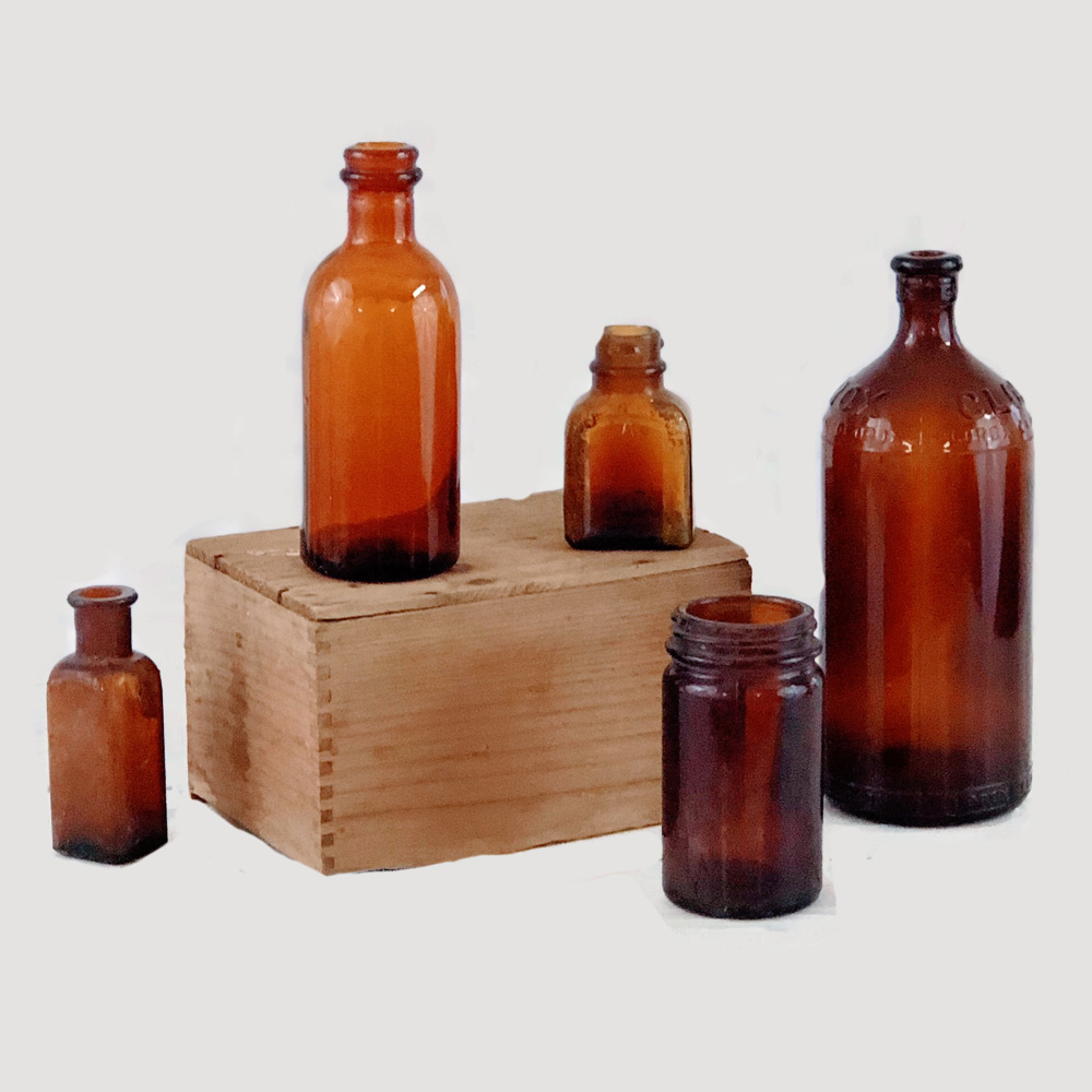 Variety of amber apothecary bottles. Perfect for bud vases or for adding extra touches of details.