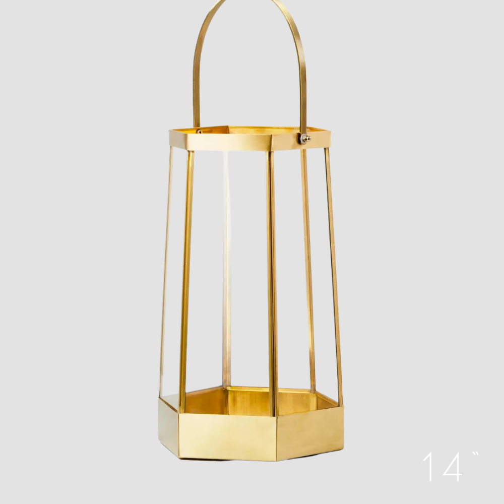 Gold Glass Lantern - Large - 14"