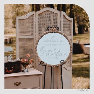 Description: Lovely gold framed mirrror for your wedding or event signage!