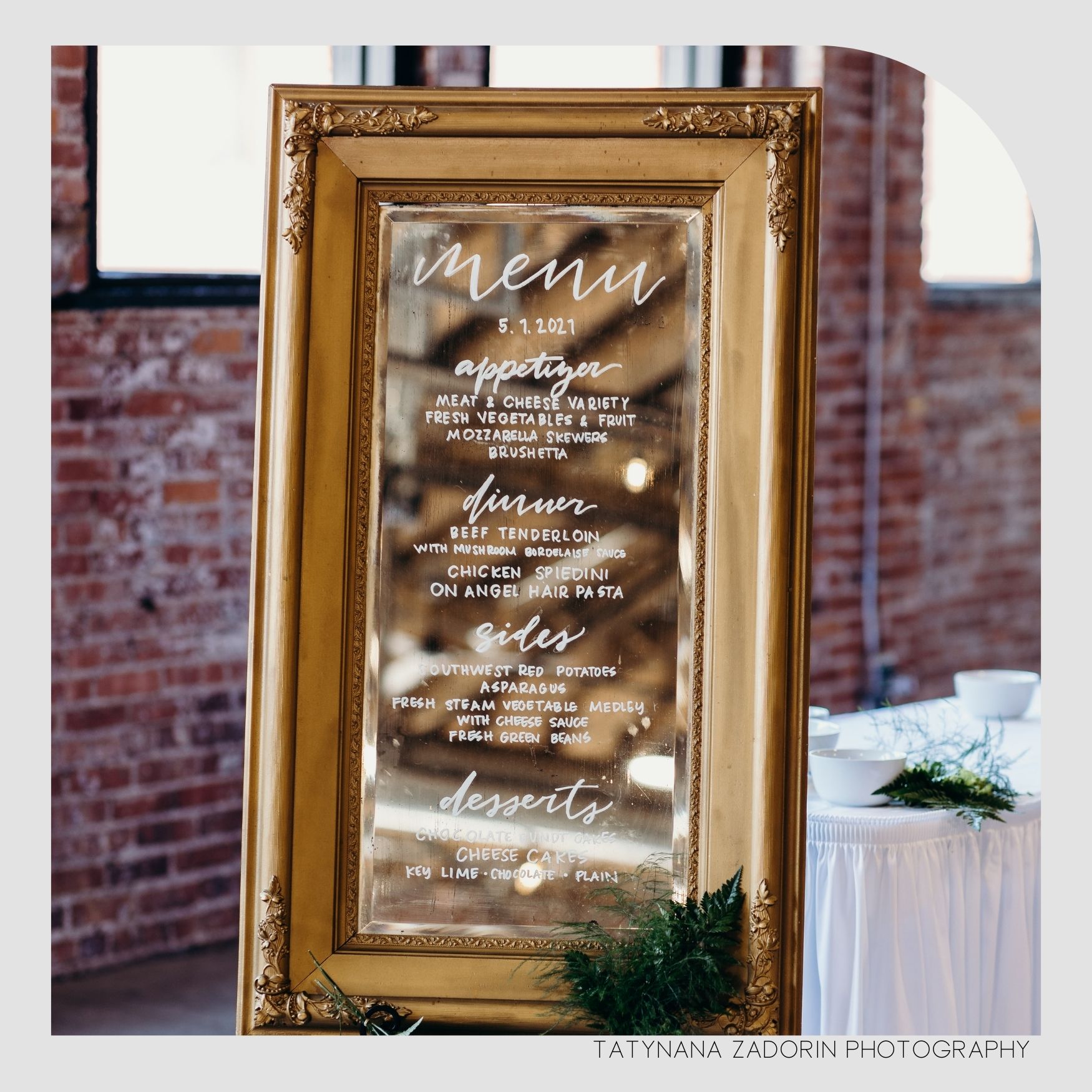 Description: Floor length mirror for signage or seating chart.