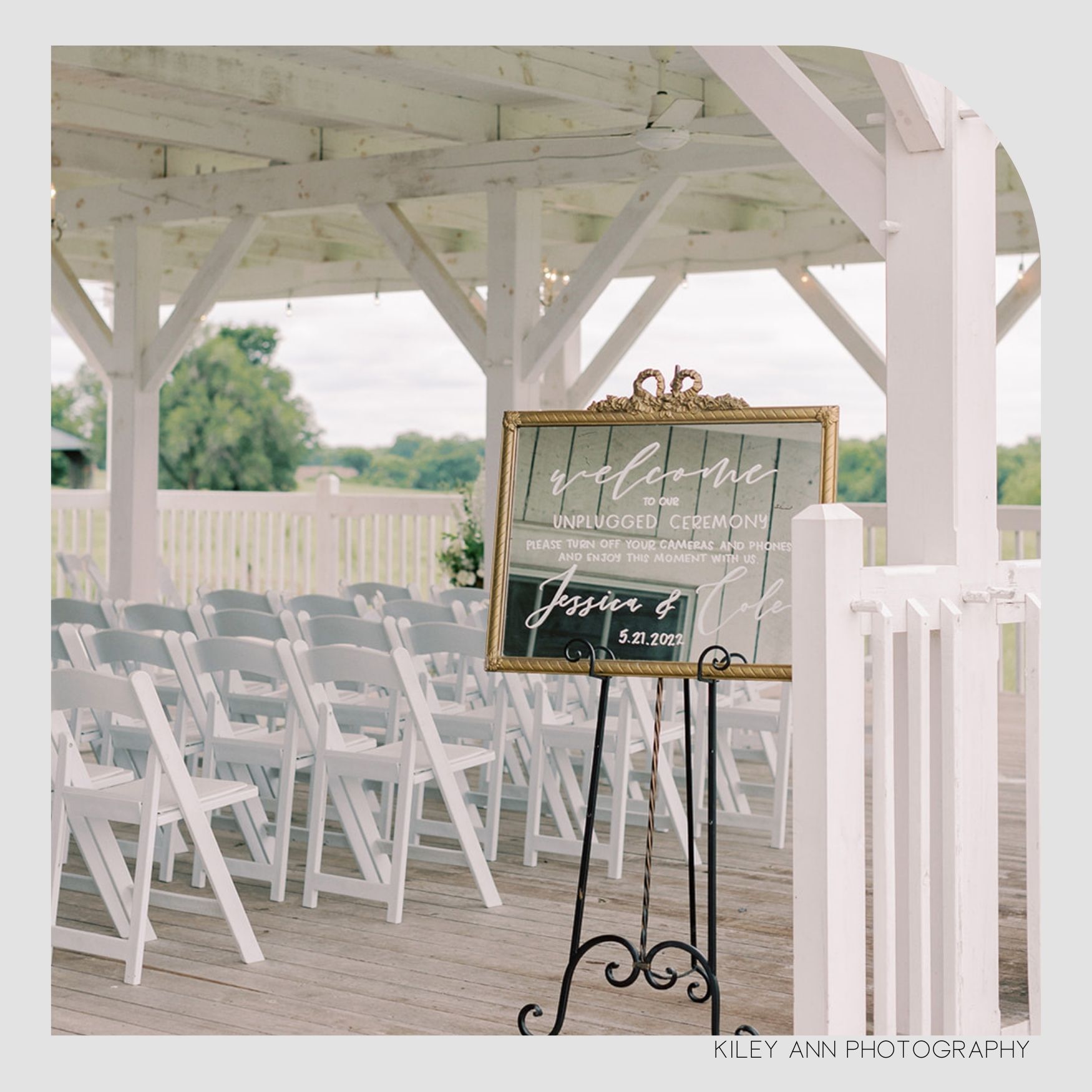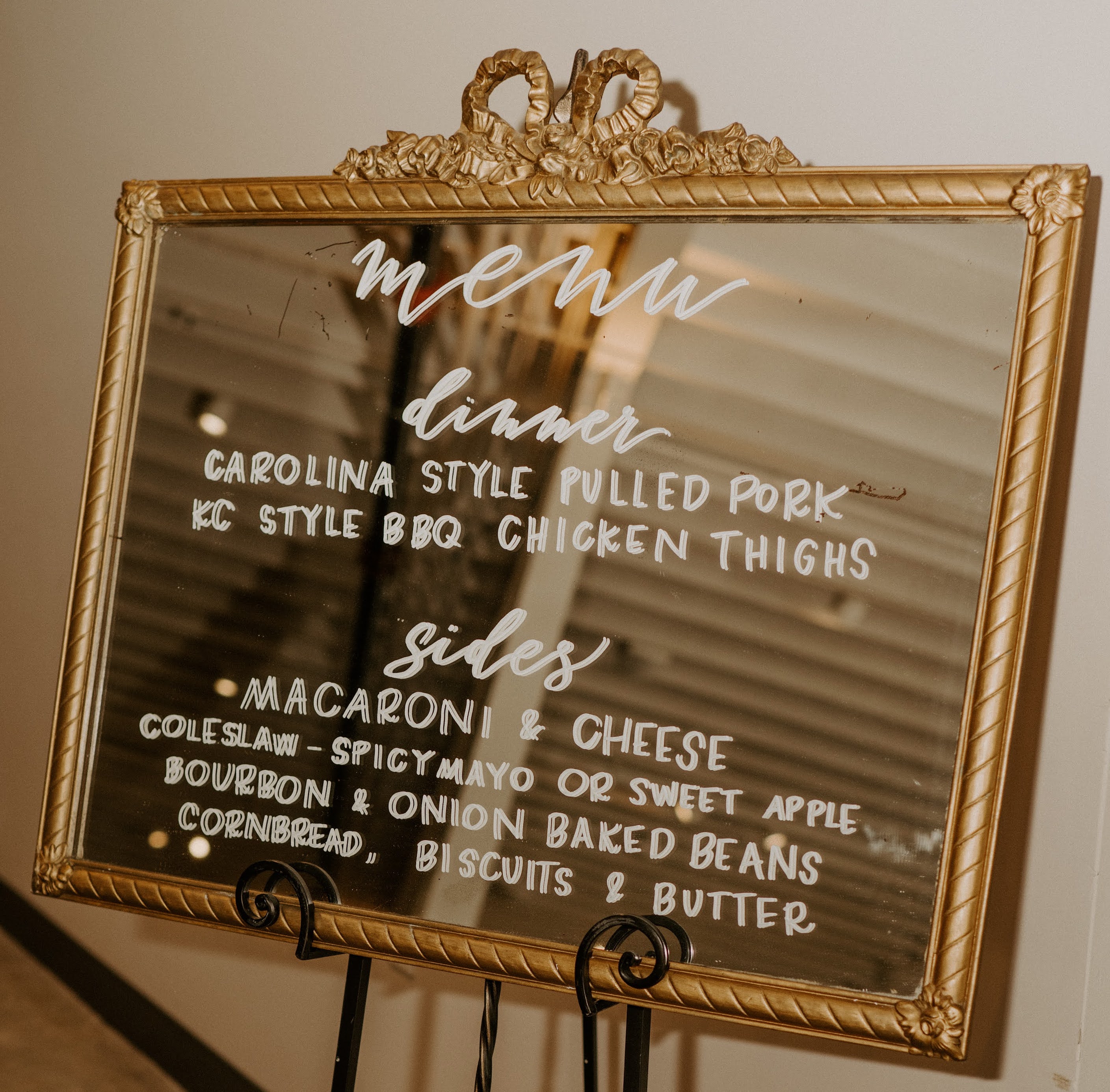 Description: Lovely gold framed mirrror for your wedding or event signage!