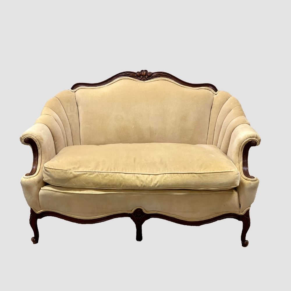Description: Sweet petite velvet settee. Great for a smaller lounge space.