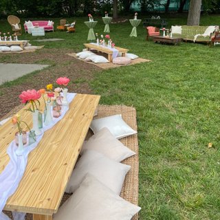 Whether you're wanting to match a specific vibe or incorporate your own, unique style, we have the rental items for you! Browse our inventory and create a wishlist to get started, or schedule an appointment to visit our showroom in-person.