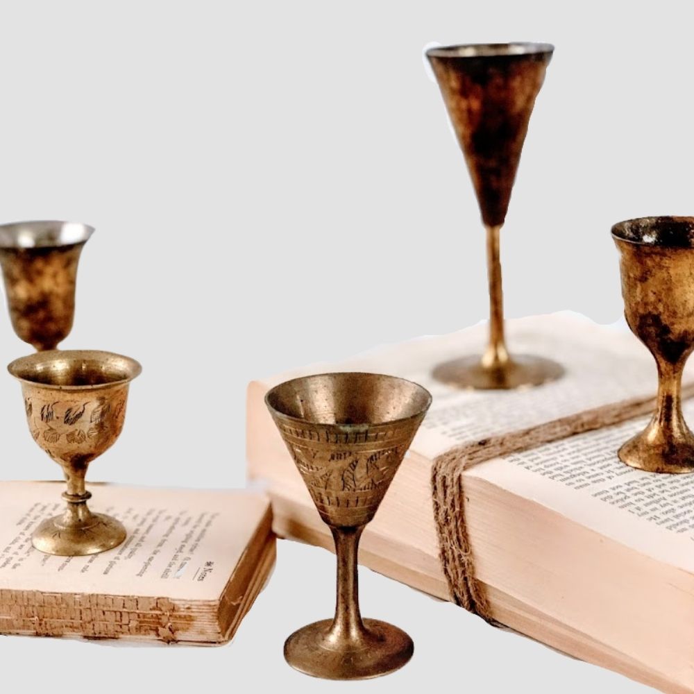 Description: Item is great for centerpiece details with flowers. Includes brass goblets and largers brass vases.