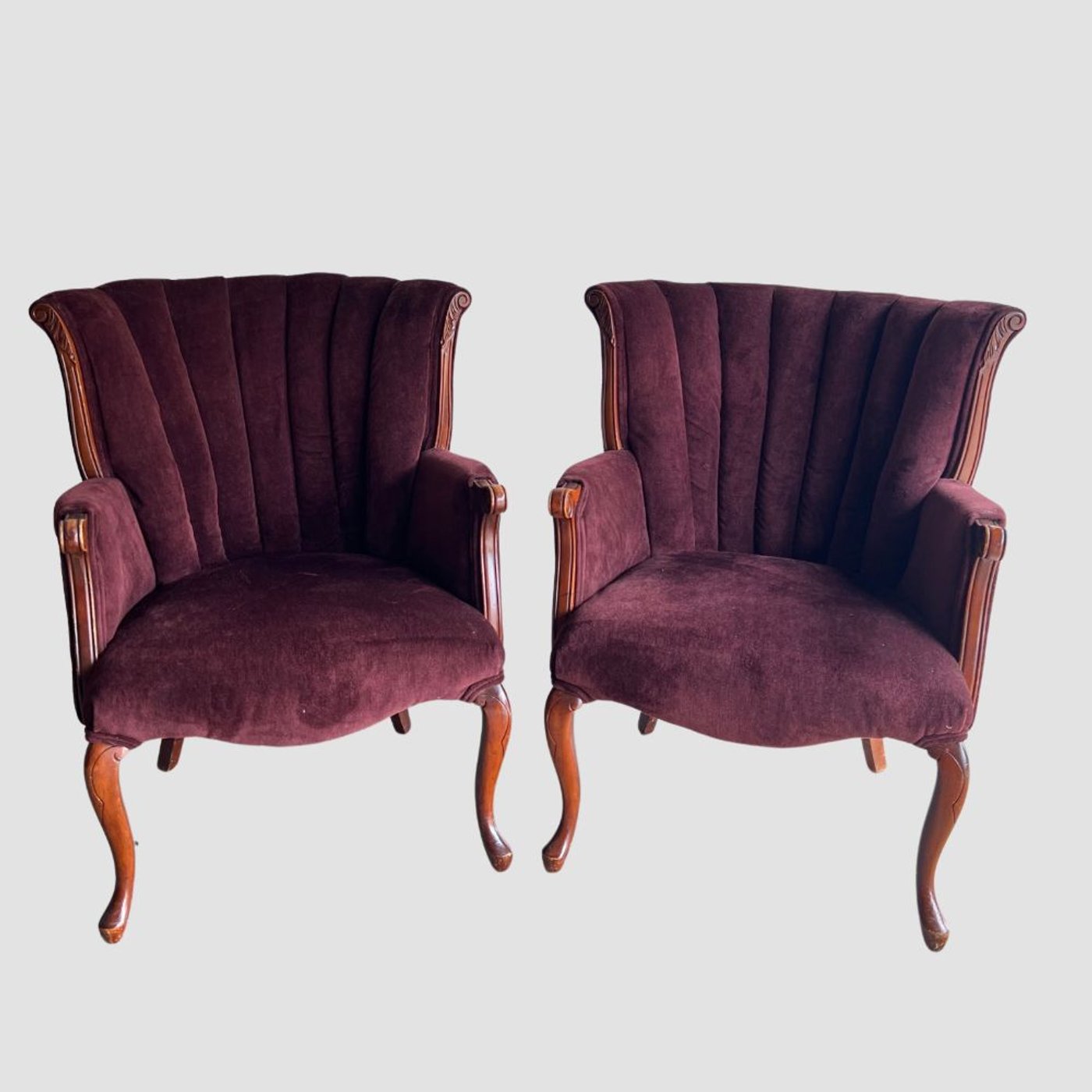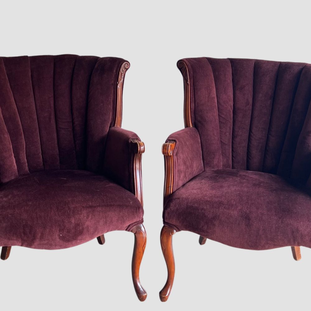 Description: Beautiful deep burgundy chairs, perfect for head table chair pair or a lounge!