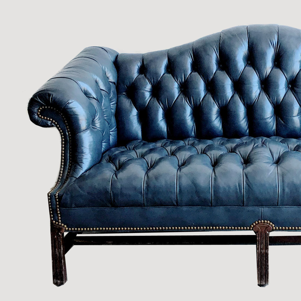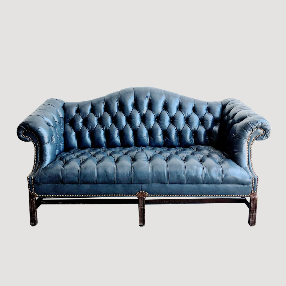 Vintage blue leather love seat. Can be used for the head table or to complete a lounge.