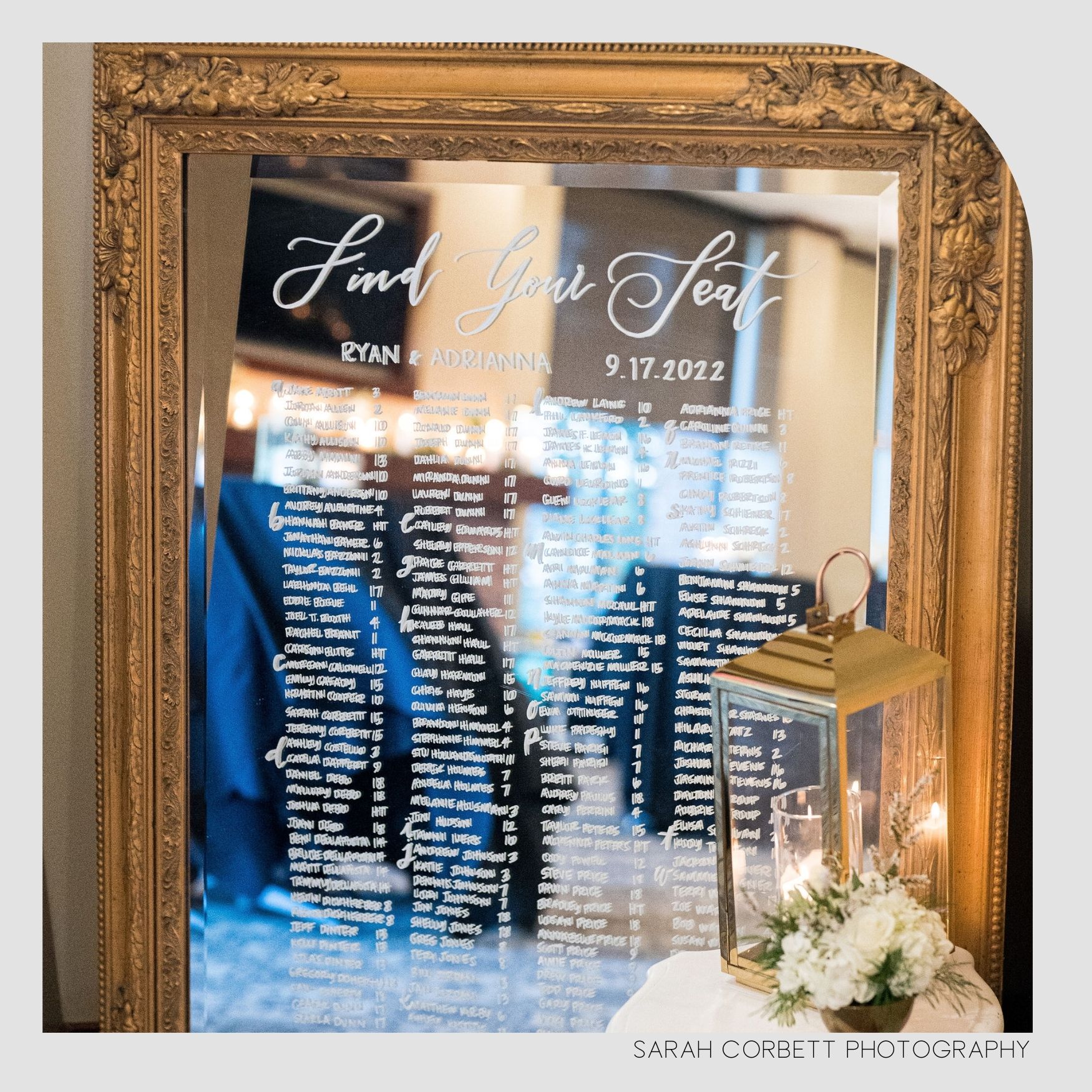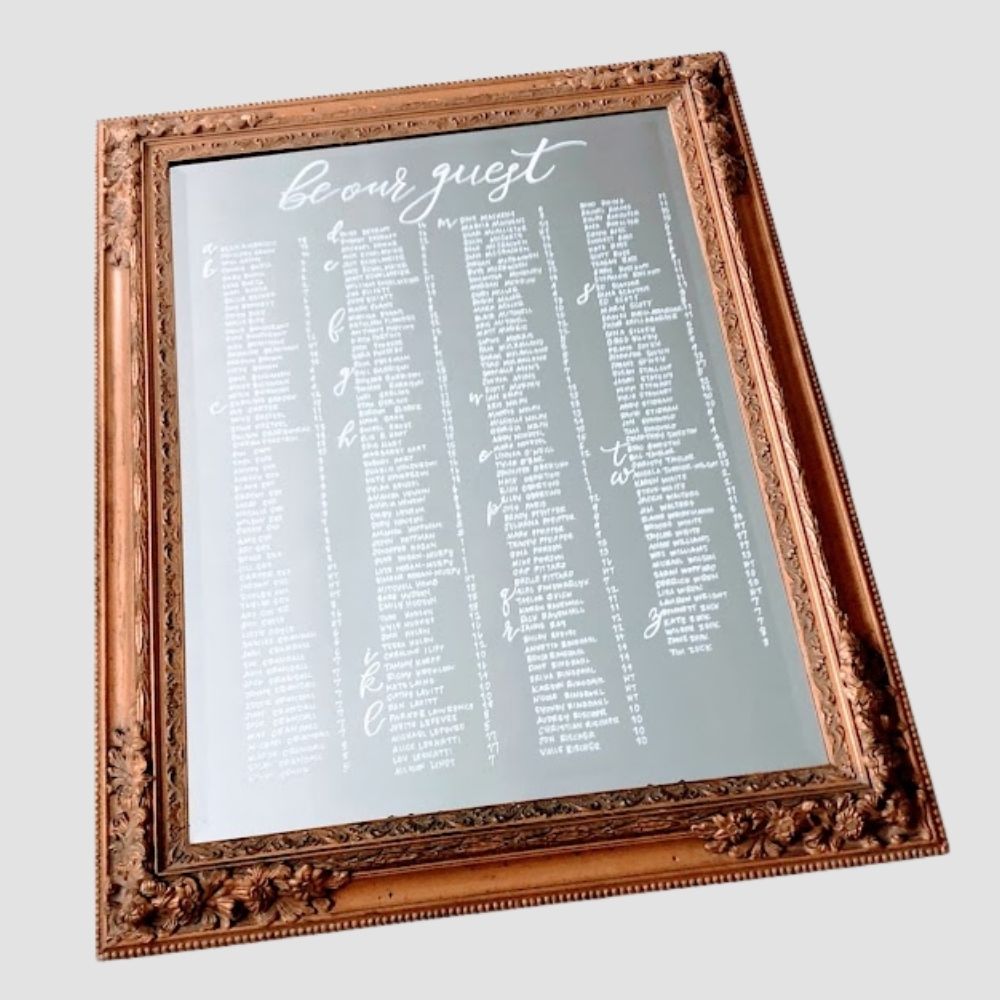 Description: Lovely gold framed mirrror for your wedding or event signage!