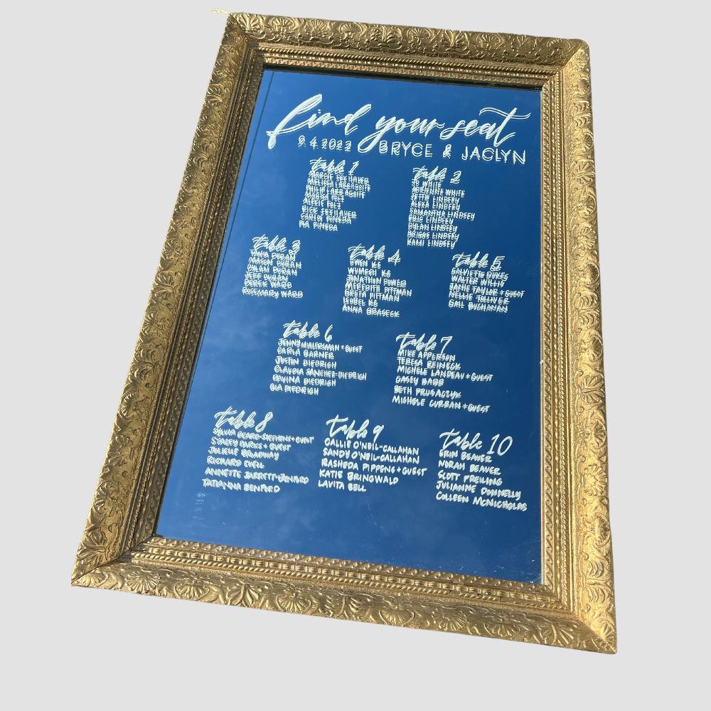 Description: Lovely gold framed mirrror for your wedding or event signage!