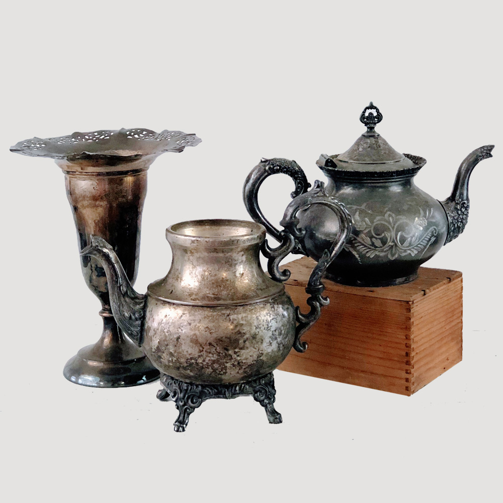 Description: Vases or teapots : these vintage pretties are great for centerpiece details with flowers.